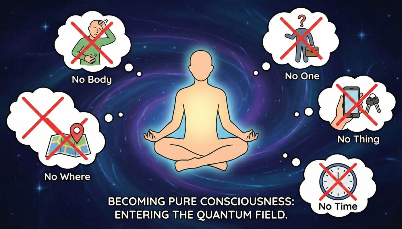 You cannot enter this field as a CEO, a mother, a victim, or a patient. You cannot enter with your name, your clothes, or your past. To access the realm of infinite potential, you must become pure consciousness.