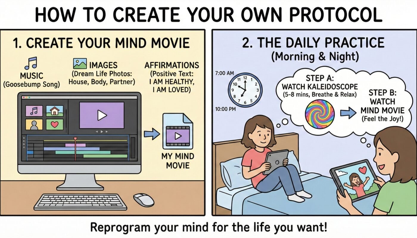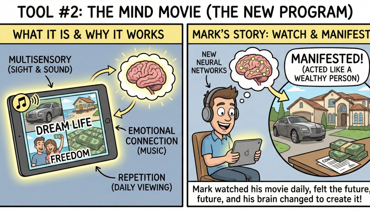 Every morning, Mark would watch the Kaleidoscope to open his mind, then immediately watch his Mind Movie. He didn’t just watch it; he memorized it. He knew exactly when the chorus would hit and when the picture of the car would appear.