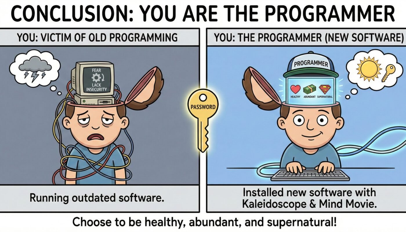By using the Kaleidoscope to open the door and the Mind Movie to install the new software, you stop being a victim of your programming and become the programmer. You can choose to be healthy. You can choose to be abundant. You can choose to be supernatural.