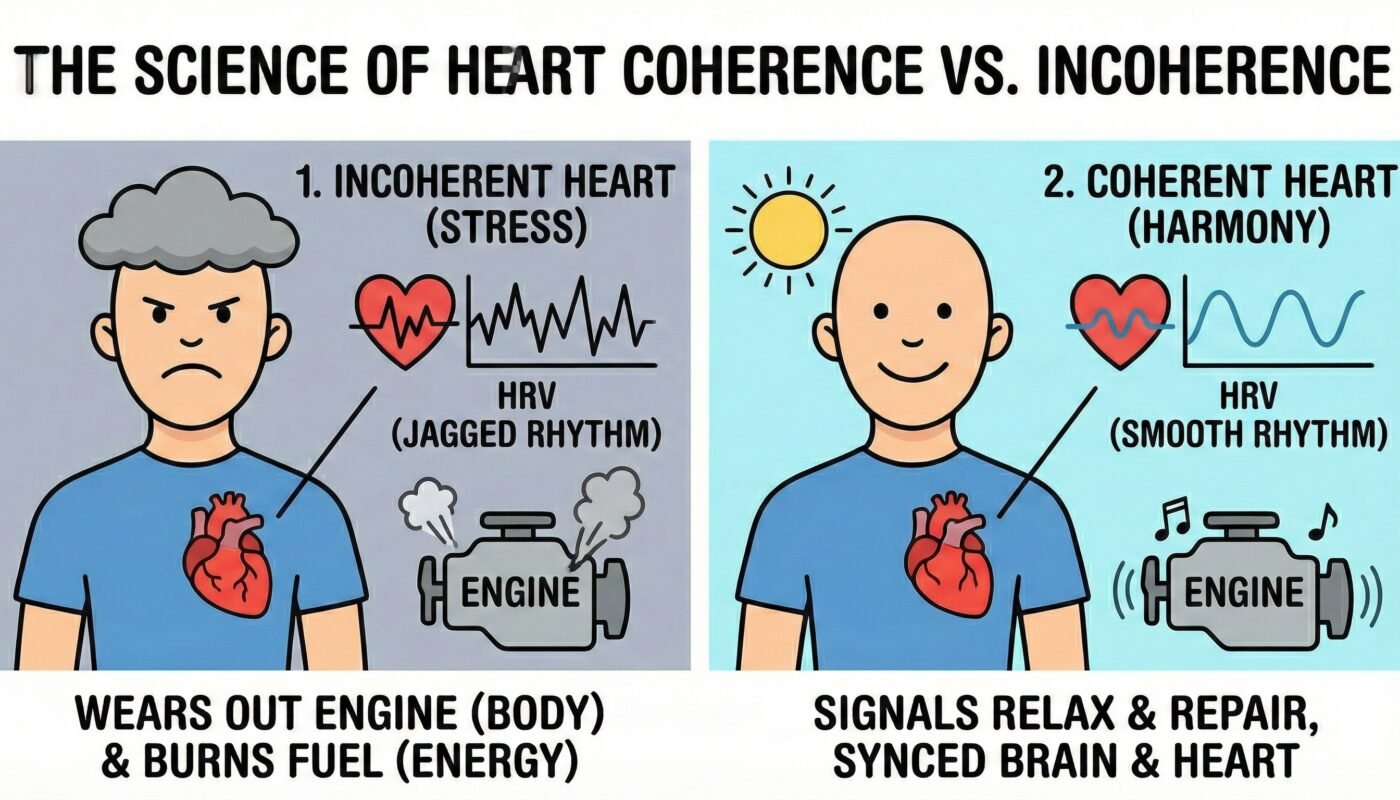 In this article, we will explore why stress destroys your heart’s rhythm, the science of “Coherence,” and how you can use a simple technique to sync your heart and brain to upgrade your life.