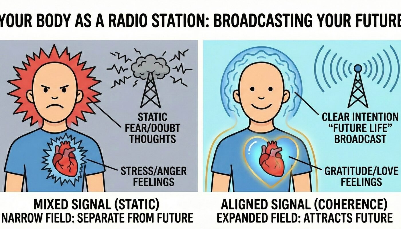 When you practice heart coherence, you are essentially turning up the dial on your radio station, broadcasting a clear signal into the quantum field to attract the life you want.
